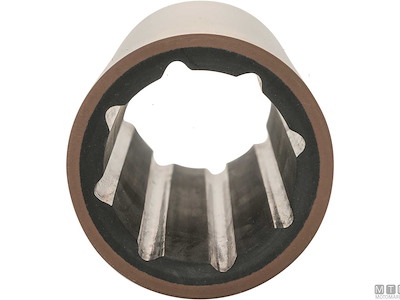 Boccole Idrolub per assi portaelica ø interno e ø esterno metrico. Guscio in Resina, interno in Gomma con canali assiali.