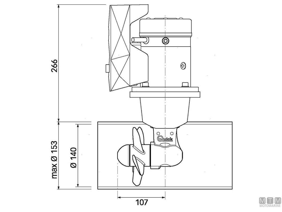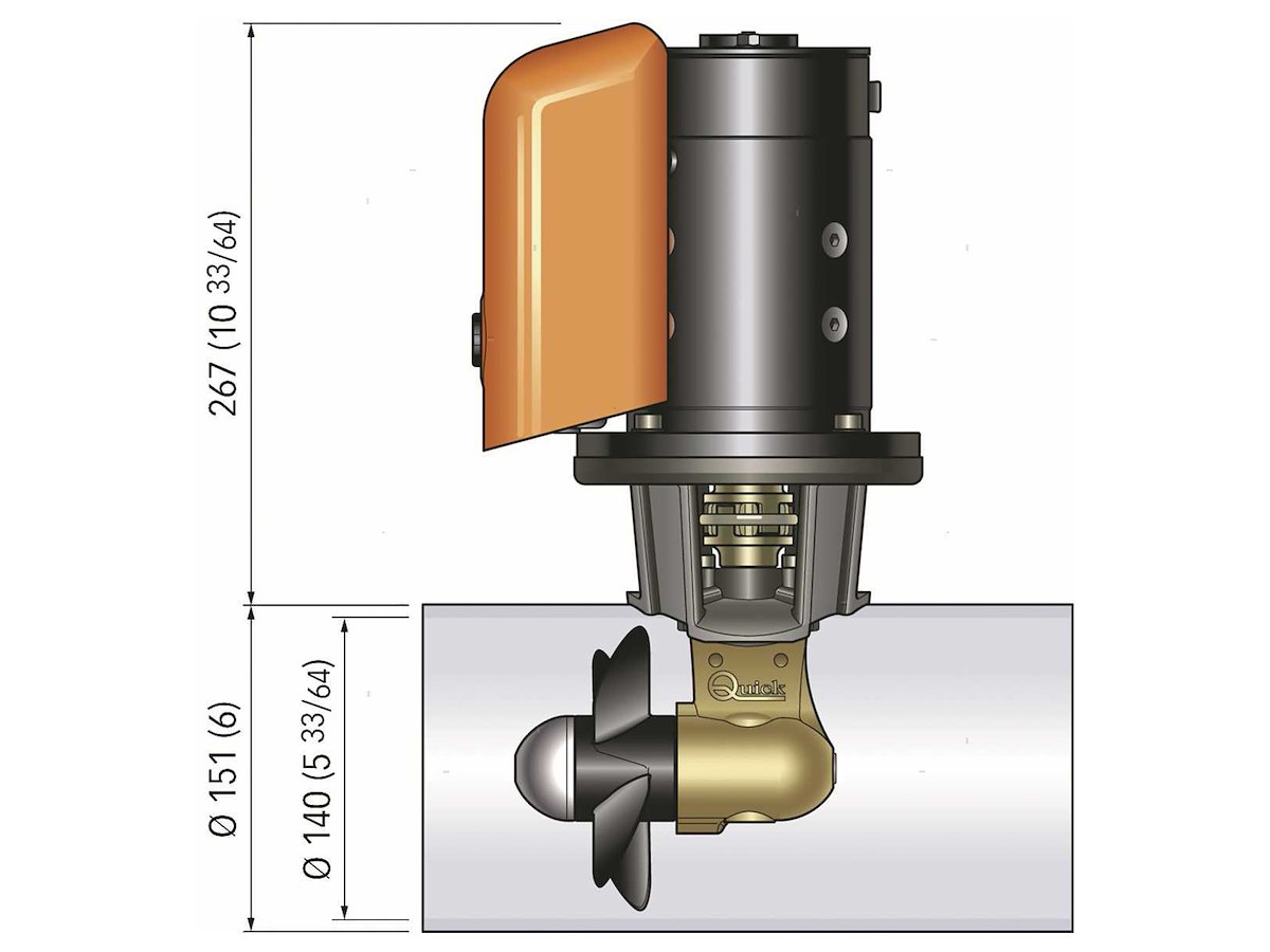 Elica di prua Bow Thruster Quick BTQ140. - Elica singola in robusto materiale composito- Riduttore in bronzo- Carter di protezione per i teleinvertitori in robusto materiale composito- Anodo di zinco di serie indipendente dal riduttore e facilmente sostituibile- Dotata di giunto elastico parastrappi- Lunghezza imbarcazione consigliata 6-10 m (20-33 ft)