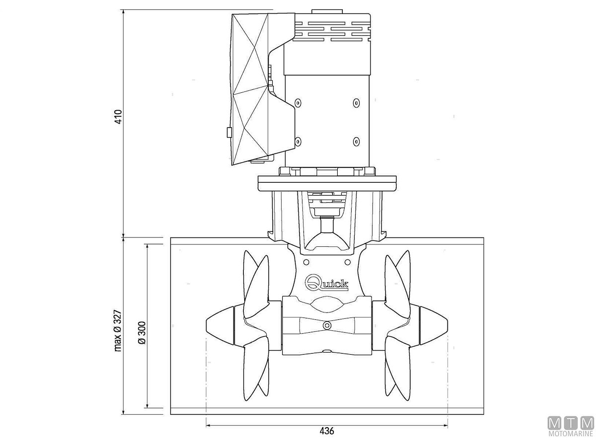 Elica di prua Bow Thruster Quick BTQ300 con 2 eliche controrotanti.- Elica doppia in robusto materiale composito. - Riduttore in bronzo- Carter di protezione per i teleinvertitori in robusto materiale composito- Anodo di zinco di serie indipendente dal riduttore e facilmente sostituibile- Dotata di giunto elastico parastrappi- Lunghezza imbarcazione consigliata 20-30 m (65-99 ft)