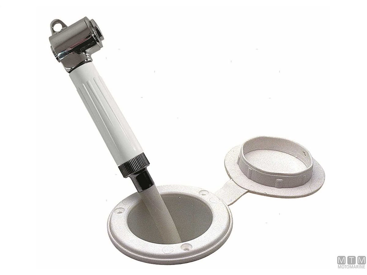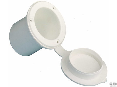 Contenitore Box tondo a incasso per doccette in Plastica con chiusura morbida. Foro incasso ø 57 mm - Esterno ø 77 mm - Profondità 65 mm. Da completare con doccetta e tubo a scelta.