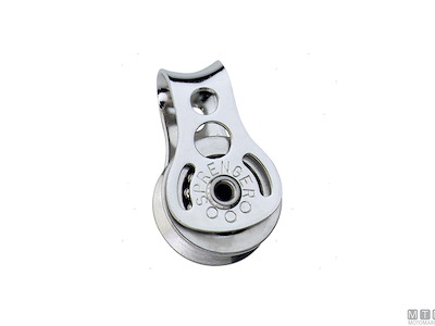 Bozzelli HS su sfere per cavi in Acciaio e scottine in Dyneema fino a 4 mm. Sfere, puleggia e cassa in Acciaio Inox. Diametro puleggia 19 mm. Carico di rottura 450 Kg.