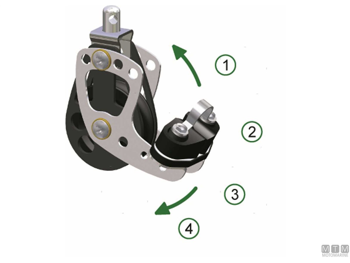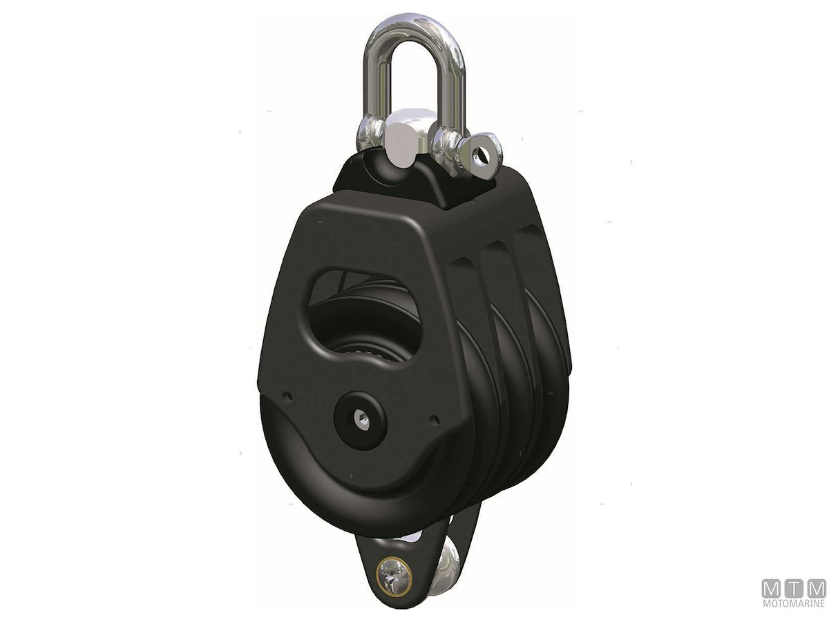 Cod.: 3600918 Ref: Bozzello triplo con arricavo + cam Puleggia mm: 50 Cima mm: <10 Carico di lavoro Kg: 800