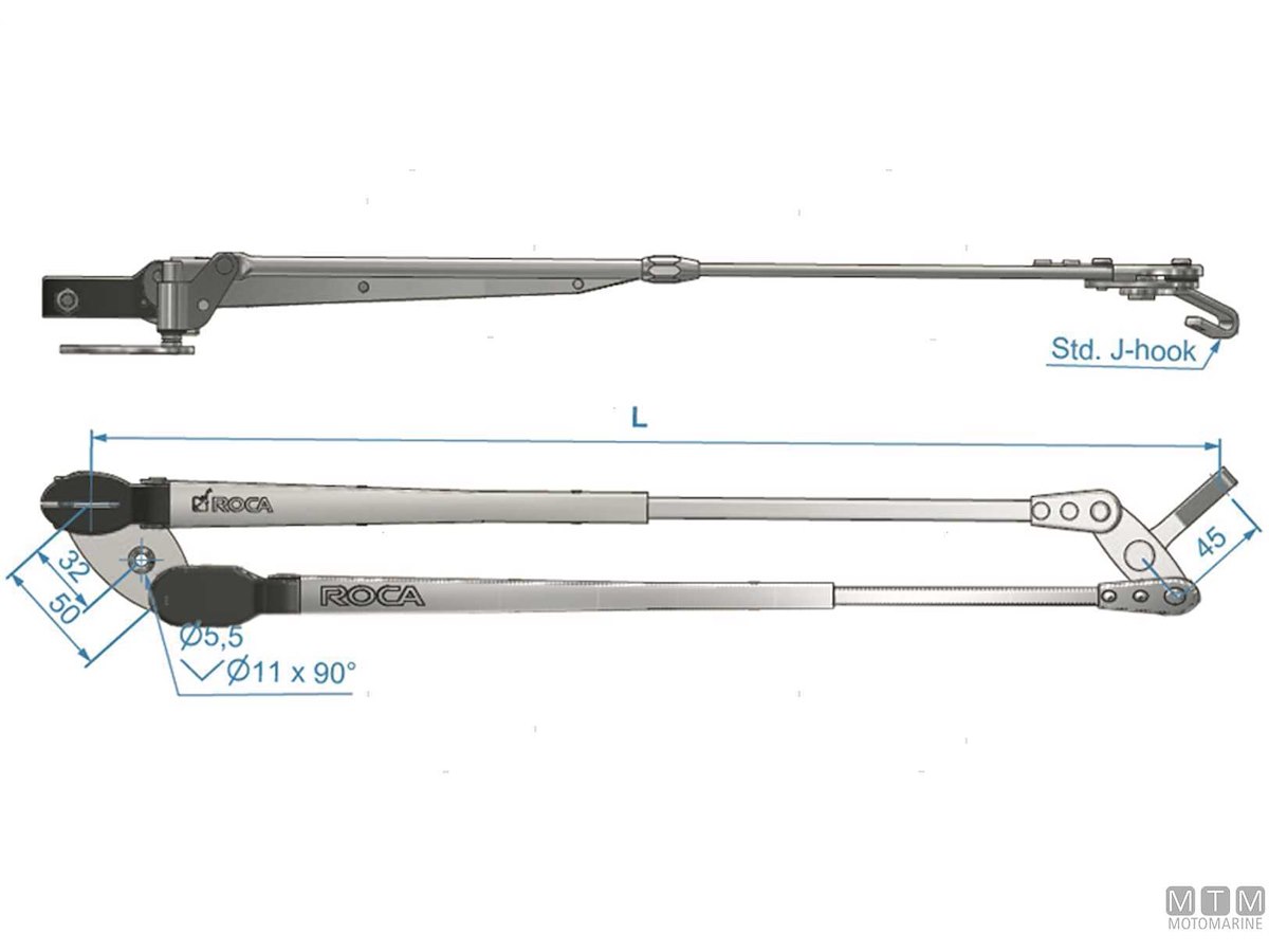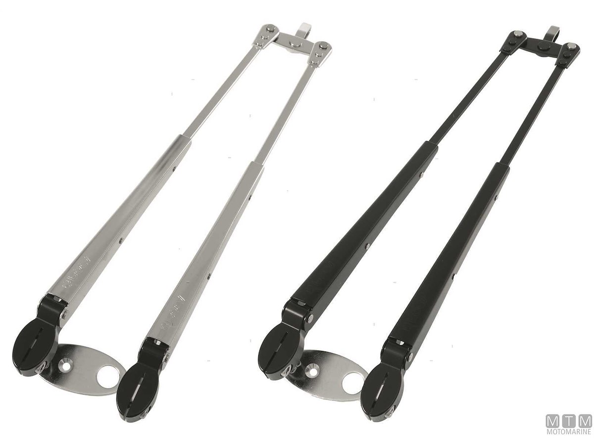 Bracci telescopici Roca a pantografo in Acciaio Inox con attacco J-Hook. Per tergicristalli W10/W12 e per qualsiasi tergicristallo con perno 13,8 mm. Campo di azione a bordi paralleli tipo P.