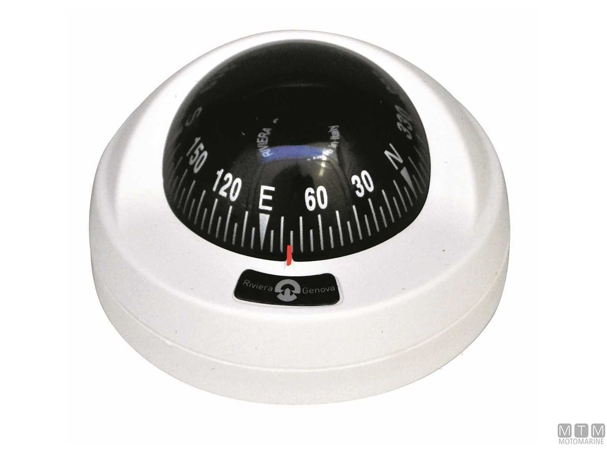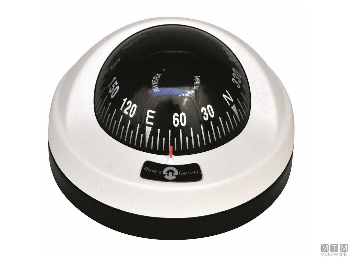Bussola Riviera a chiesuola Aries con calotta antiriflesso, per piccole imbarcazioni. • Facilmente levabile grazie all'installazione a baionetta • Gradazione luminescente per lettura notturna • Diametro apparente da 2” 1/2 - 65 mm • Lettura frontale (divisione rosa 5°) • Per imbarcazioni normali e alta velocità • Garanzia 3 anni