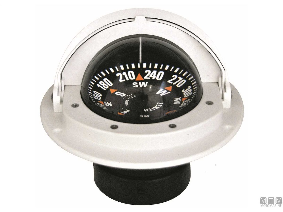Bussola a incasso Zenith BZ1C con schermo antiriflesso e calotta di protezione. Versione normale e alta velocità per barche veloci. • Compensazione incorporata • Sospensione cardanica interna • Illuminazione: 12V di serie (24V a richiesta) • Diametro apparente da 3” - 80 mm • Lettura posteriore (divisione rosa 5°) • Per imbarcazioni normali e alta velocità • Garanzia 3 anni * Certificazione MED (se necessaria) da richiedere prima dell'acquisto