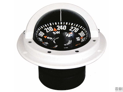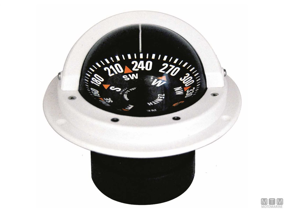 Bussola a incasso Zenith BZ1 con schermo antiriflesso. Versione normale e alta velocità per barche veloci. • Compensazione incorporata • Sospensione cardanica interna • Illuminazione: 12V di serie (24V a richiesta )• Diametro apparente da 3” - 80 mm • Lettura posteriore (divisione rosa 5°) • Per imbarcazioni normali e alta velocità • Garanzia 3 anni * Certificazione MED (se necessaria) da richiedere prima dell'acquisto