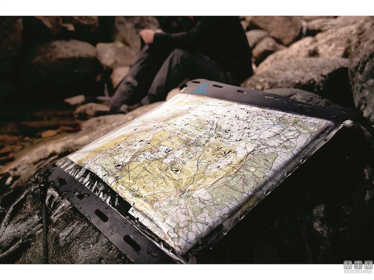 Custodia stagna per proteggere mappe, cartine o qualsiasi altro documento. Le estremità sono rinforzate con fascia rigida forata per agganciare il laccio (compreso).
