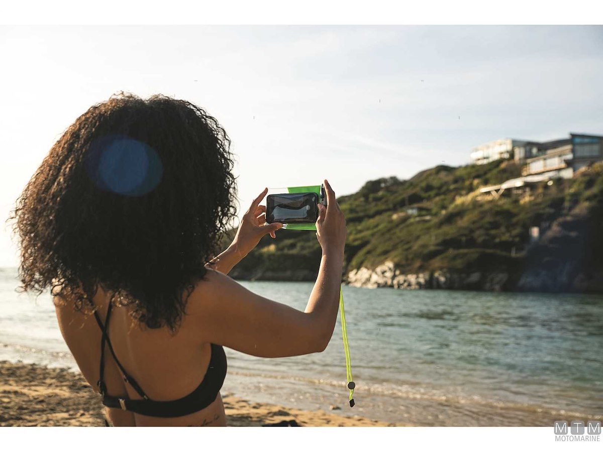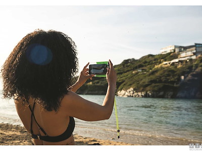 Custodia stagna fino a 10 m di profondità per smartphone. La doppia lente Lenzlex permette di effettuare foto e video dentro o fuori dall’acqua garantendo ottime prestazioni e una totale sicurezza allo smartphone. Utilizzo garantito del telefono, di tutti i tasti e del touchscreen anche attraverso la custodia. Dotata di tracolla.