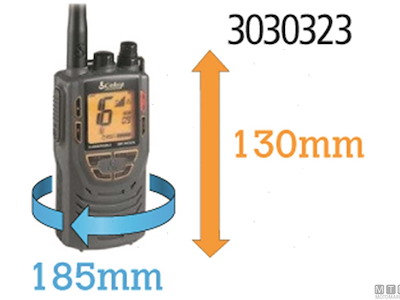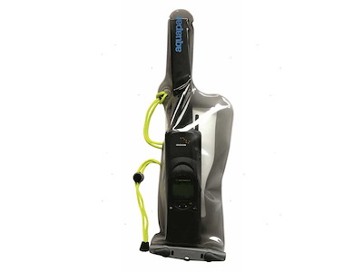 Custodia stagna fino a 10m di profondità per VHF. Non crea interferenze con la ricezione o trasmissione del segnale e l'utilizzo di tutti i tasti è garantito attraverso la custodia. Completa di laccio. C = circonferenza del VHF.