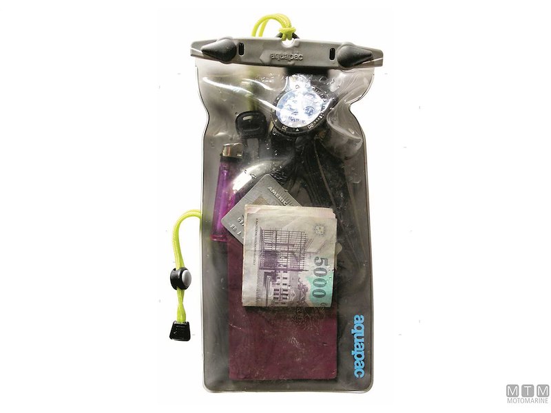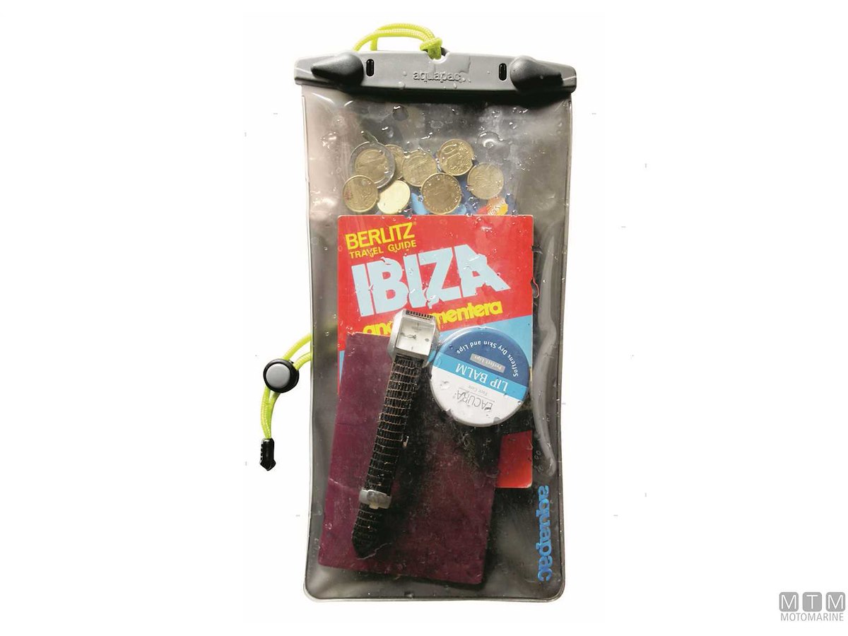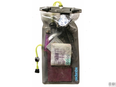 Custodia stagna fino a 10 m di profondità per proteggere gli effetti personali come carte di credito, banconote, chiavi e monete. Completa di laccio.