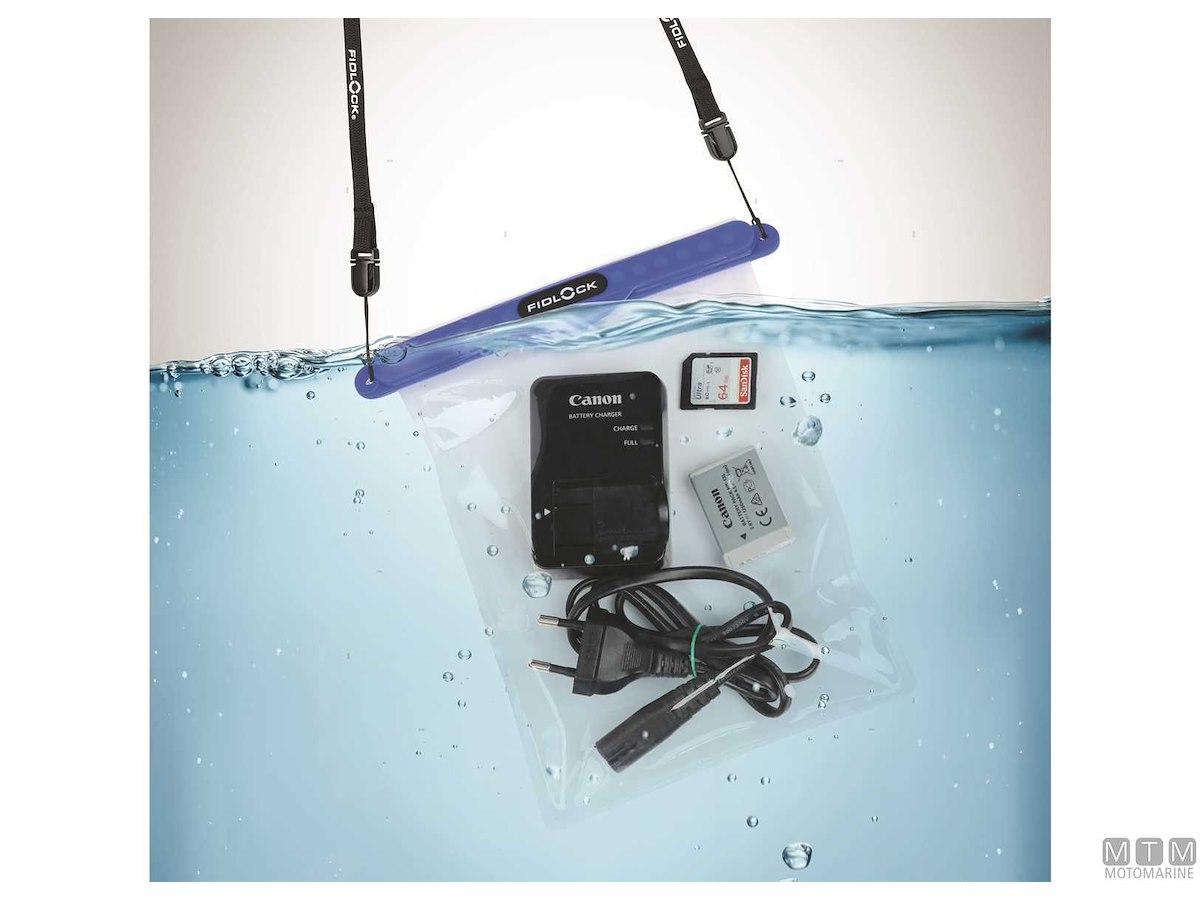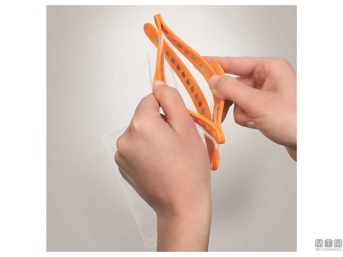 Custodia stagna fino a 30 m di profondità con tecnologia brevettata Gooper®, sistema di chiusura ermetica automatica della borsa che permette di tenere al sicuro tutti gli effetti personali riposti al suo interno. Grazie al materiale high-tech trasparente è possibile utilizzare lo smartphone all'interno senza problemi. Completa di laccio dim 400 x 9 mm.