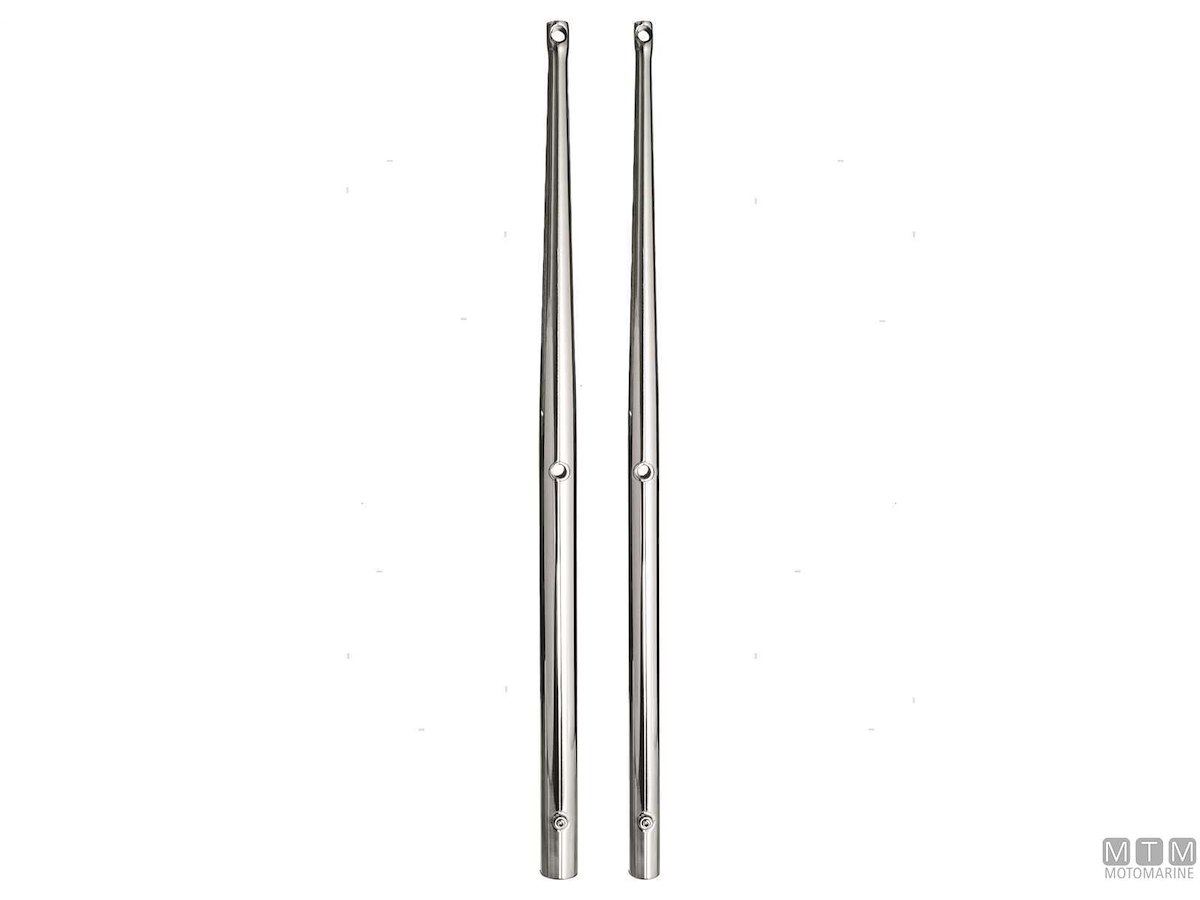 Candelieri in Acciaio Inox AISI316 lucidato a specchio. Si montano su base a perno con fermo vite esagonale che permette la rotazione e l'allineamento del candeliere sulla battagliola.
