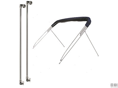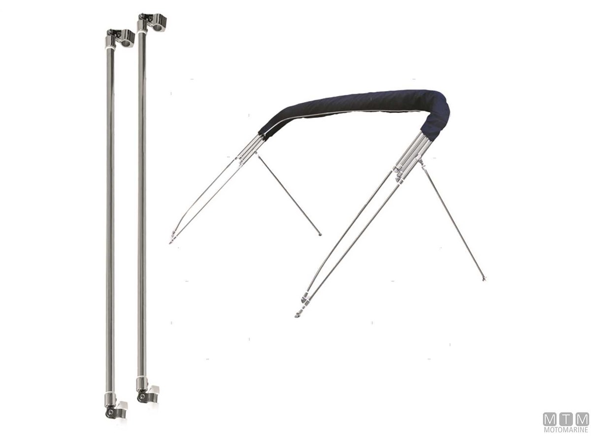 Capottine tendalini sole - acqua a 3 archi smontabili. Struttura in Acciaio Inox 316, tessuto in Poliestere 100% spalmato in PVC. Tubi da 22mm. Grazie ai supporti opzionali Pole possono restare chiuse in posizione come un Rollbar.
