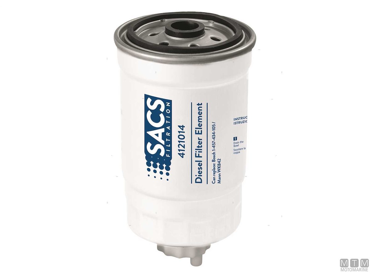 Cartuccia prefiltro universale tipo Bosch 1457434105 con spurgo per motori diesel. Flusso massimo 80 Lt/h. Compatibile per motori: Volvo - Mercruiser - VW - Man - Steyr - Aifo/Iveco - VM - Diesel