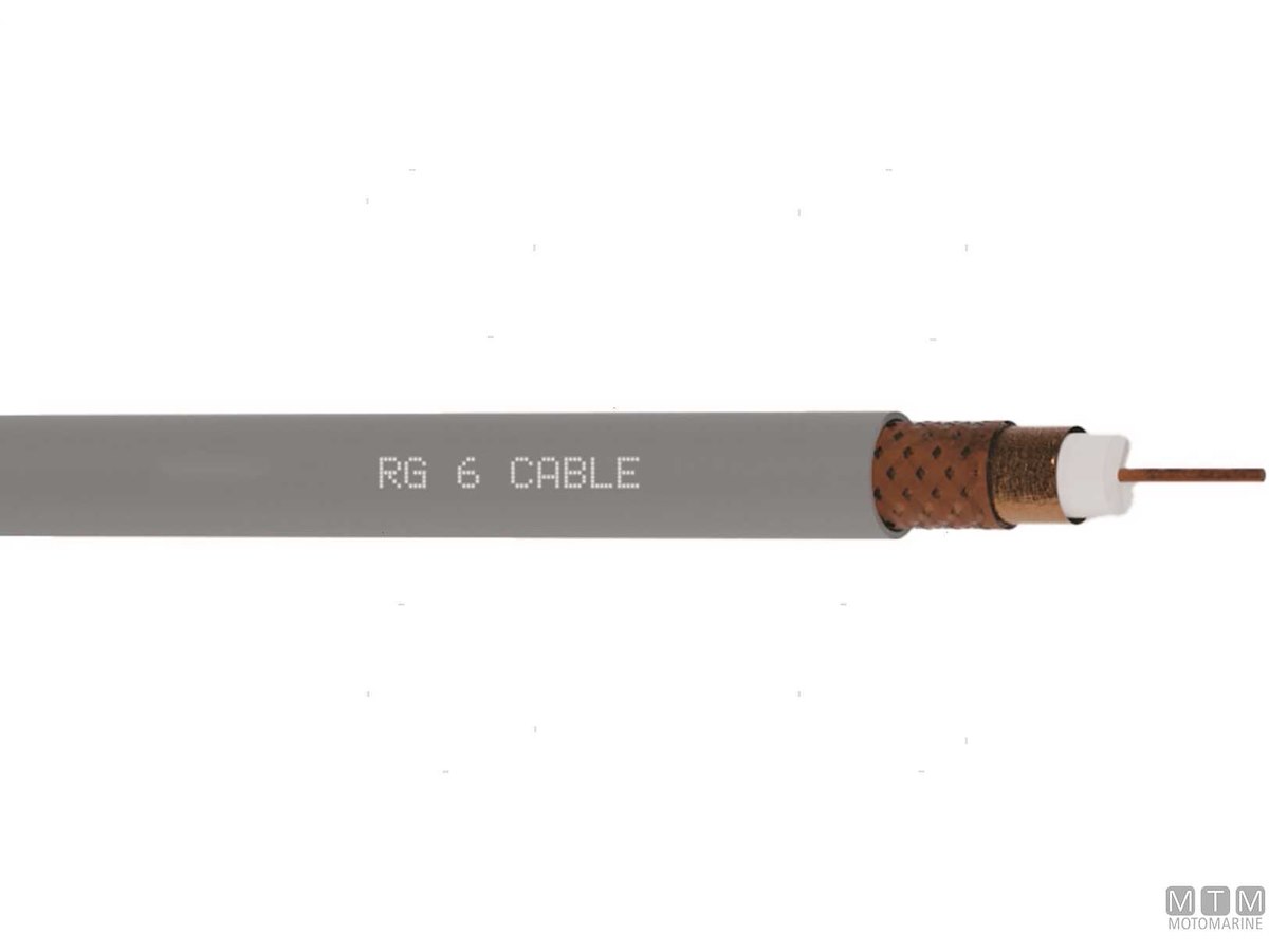 Cavo coassiale marino schermato certificato CE a bassa attenuazione e 75 Ohm di impedenza, progettato per applicazioni elettriche marine di segnale e comunicazione satellitare, CATV e CCTV. Anima in Rame, guaina flessibile in PVC con schermatura in Rame intrecciato e lamina CU-PET.
