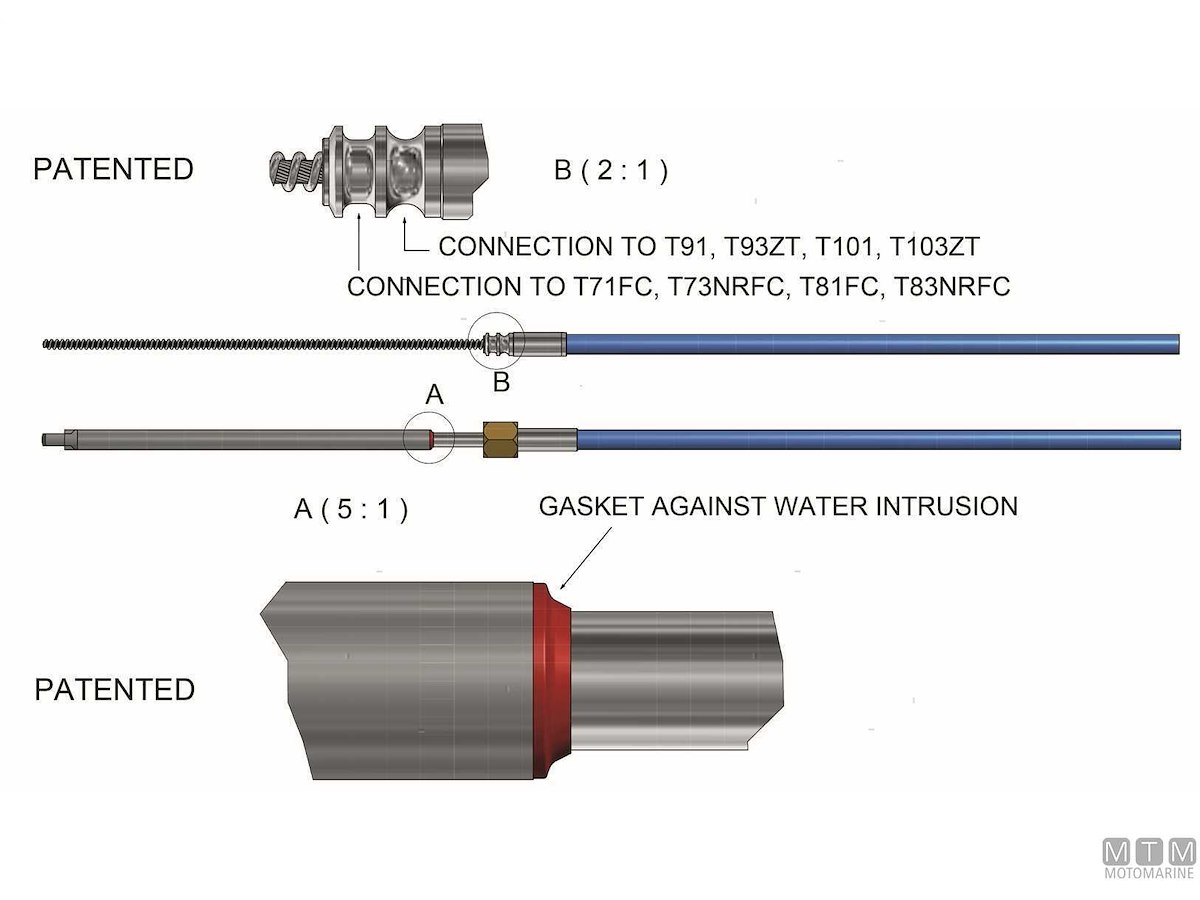 Cavo Ultraflex M90 Mach ad alta flessibilità e scorrevolezza per timonerie: Ultraflex T85 – T71FC – T72FC - T73NRFC – T74NRFC - T81FC – T83NFRC - T91 - T93ZT - T101 - T103ZT Teleflex Safe TQC - NFB safe TII - NFB4.2 Morse D290