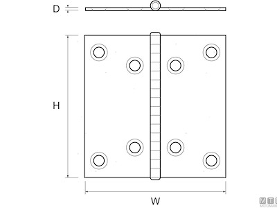 Cerniera a libro grande in Acciaio Inox. Cod.: 0401385 D mm: 2 W mm: 100 H mm: 100