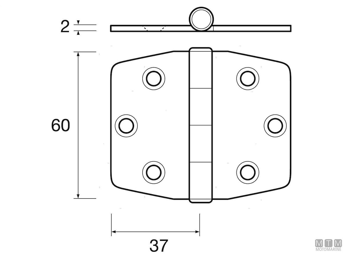 Cerniera a biscotto media in Acciaio Inox Extracrome con angoli squadrati. Cod.: 0450060 mm: H60 x L37+37
