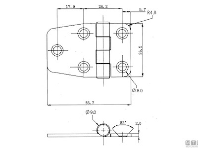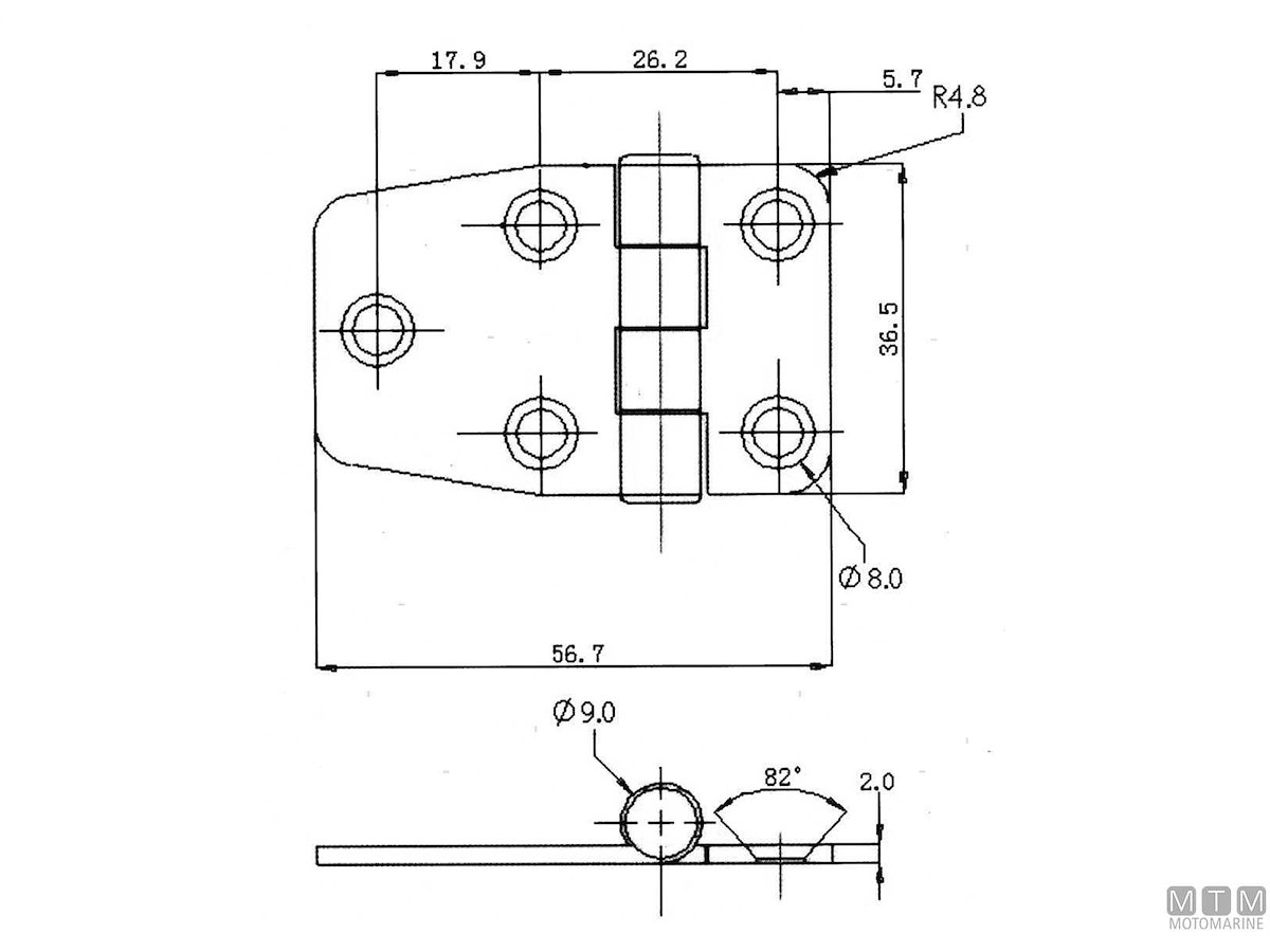 CERNIERA COPERTA ASIMMETRICA 36X57MM IN ACCIAIO INOX 316