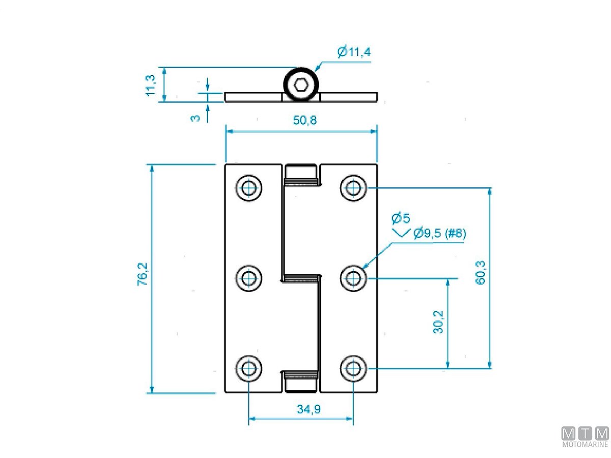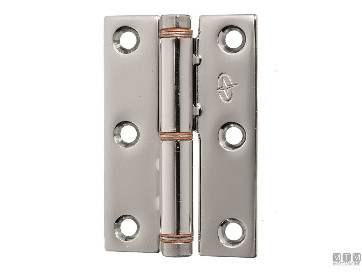 Cerniera Roca in Acciaio Inox frizionata con sistema a cuscinetti in Bronzo GEM. Progettata per l'ambiente marino, permette di aprire e chiudere porte, portelli e chiusure senza urti e danni da fine corsa o da colpi di vento. Il momento torcente della frizione può essere regolato con vite a brugola sul perno, migliorando l'efficacia della cerniera. Cod.: 0451004
