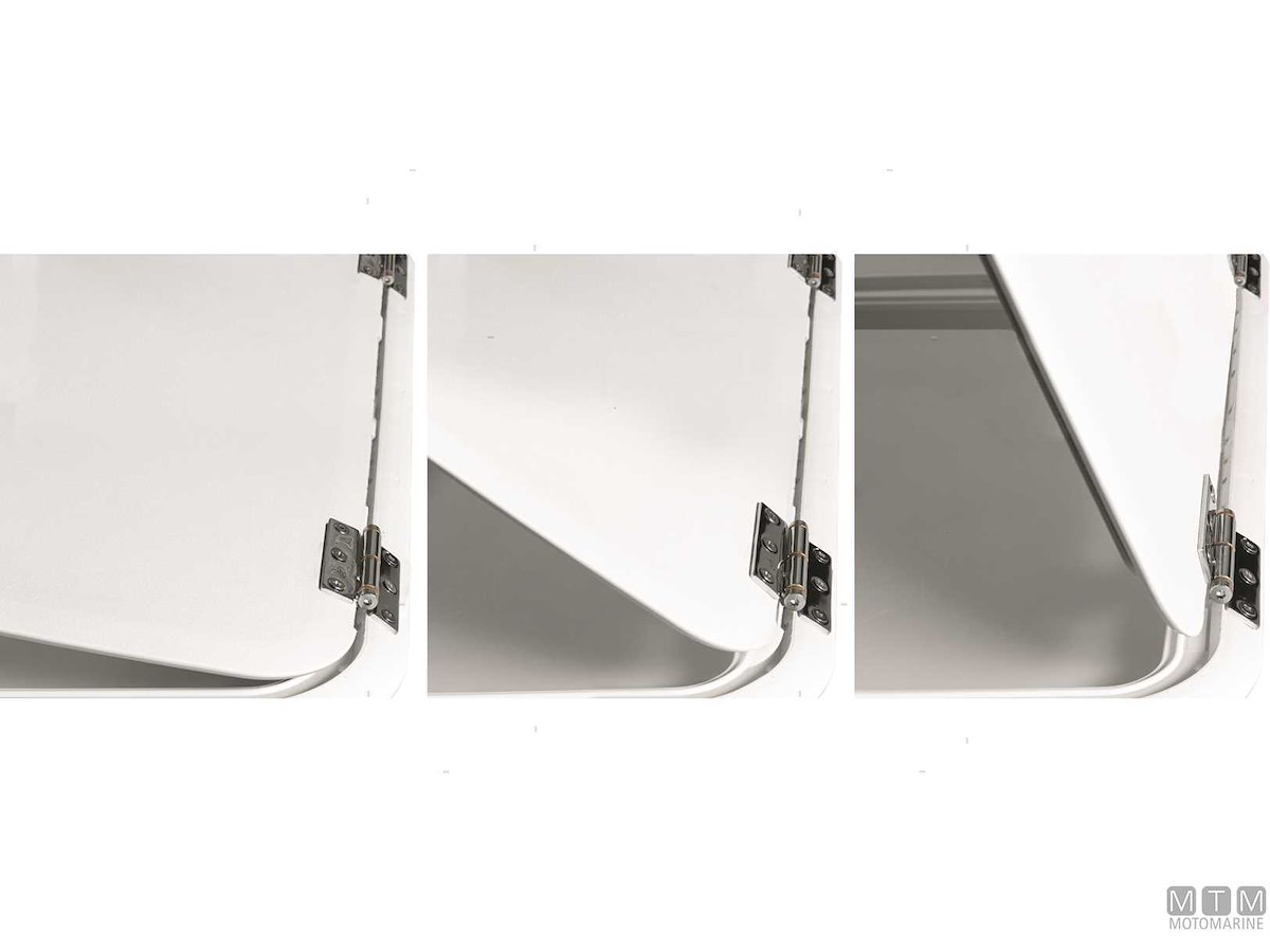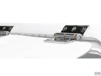 Cerniera Roca in Acciaio Inox frizionata con sistema a cuscinetti in Bronzo GEM. Progettata per l'ambiente marino, permette di aprire e chiudere porte, portelli e chiusure senza urti e danni da fine corsa o da colpi di vento. Il momento torcente della frizione può essere regolato con vite a brugola sul perno, migliorando l'efficacia della cerniera.