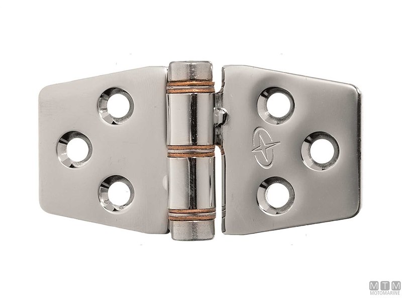 Cerniera Roca in Acciaio Inox frizionata con sistema a cuscinetti in Bronzo GEM. Progettata per l'ambiente marino, permette di aprire e chiudere porte, portelli e chiusure senza urti e danni da fine corsa o da colpi di vento. Il momento torcente della frizione può essere regolato con vite a brugola sul perno, migliorando l'efficacia della cerniera.