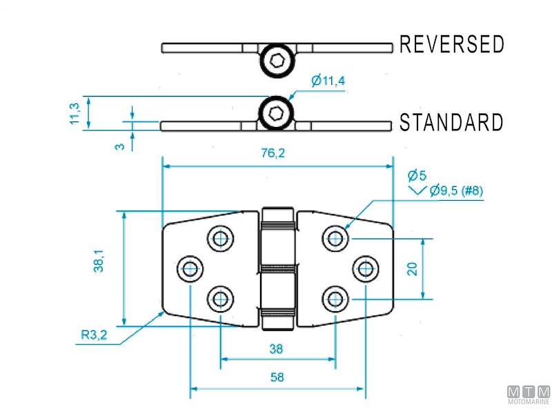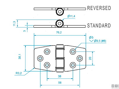 CERNIERA FRENATA ROCA ASSE INFERIORE 38X76MM IN ACCIAIO INOX 316
