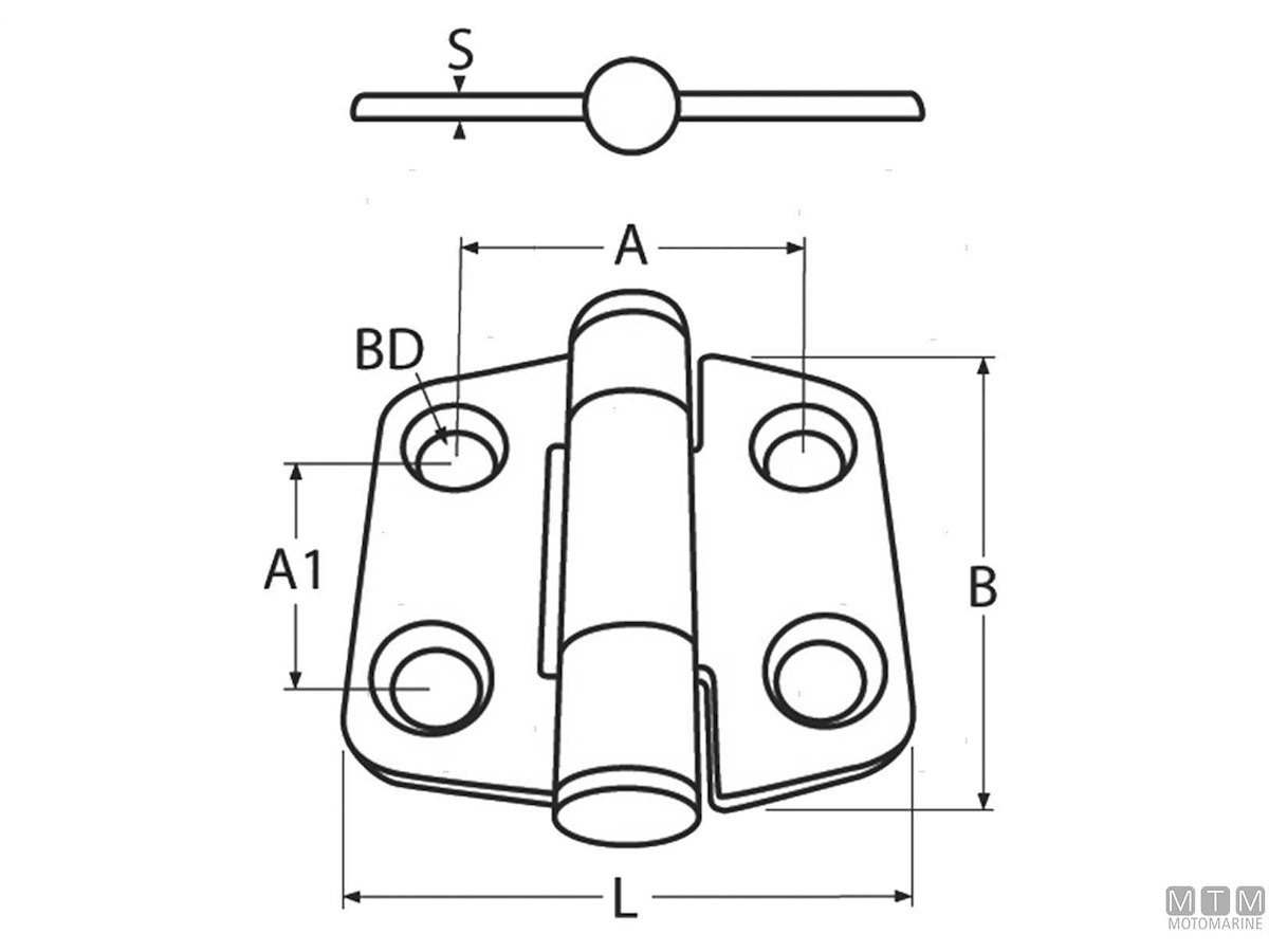 Cerniera frizionata in Acciaio Inox A4 AISI316 con momento torcente da 1,5 Nm e componenti antivibranti. Permette di aprire e chiudere porte, portelli e chiusure senza urti e danni da fine corsa o da colpi di vento.