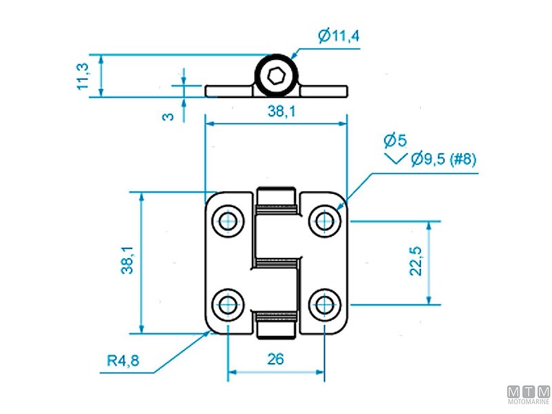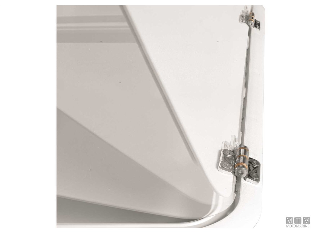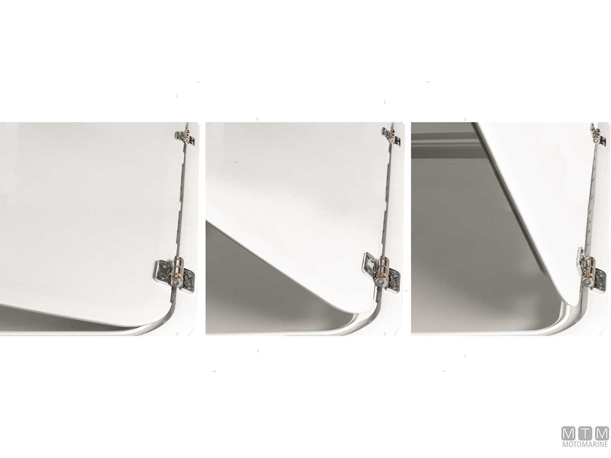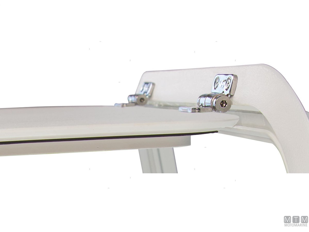 Cerniera Roca in Acciaio Inox frizionata con sistema a cuscinetti in Bronzo GEM. Progettata per l'ambiente marino, permette di aprire e chiudere porte, portelli e chiusure senza urti e danni da fine corsa o da colpi di vento. Il momento torcente della frizione può essere regolato con vite a brugola sul perno, migliorando l'efficacia della cerniera.
