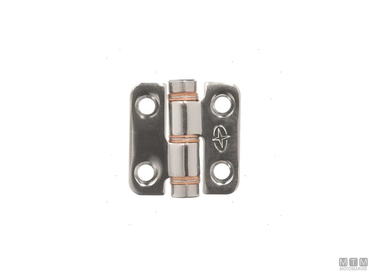 Cerniera Roca in Acciaio Inox frizionata con sistema a cuscinetti in Bronzo GEM. Progettata per l'ambiente marino, permette di aprire e chiudere porte, portelli e chiusure senza urti e danni da fine corsa o da colpi di vento. Il momento torcente della frizione può essere regolato con vite a brugola sul perno, migliorando l'efficacia della cerniera. Cod.: 0451000