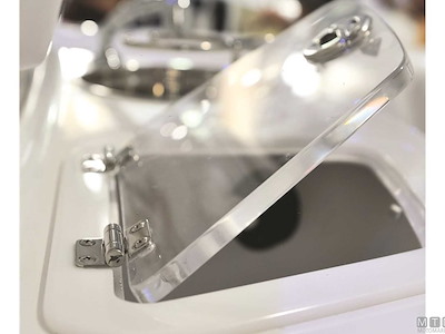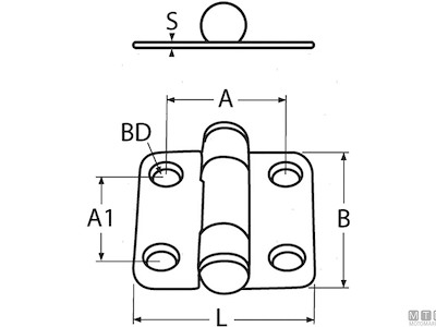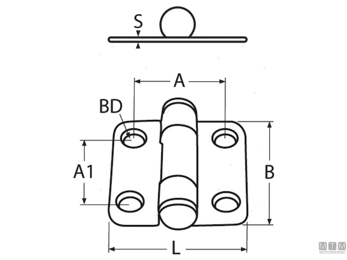 Cerniera frizionata in Acciaio Inox A4 AISI316 con momento torcente da 2,2 Nm e componenti antivibranti. Permette di aprire e chiudere porte, portelli e chiusure senza urti e danni da fine corsa o da colpi di vento.