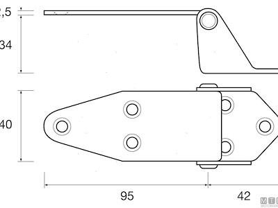 Cerniera a sbalzo alto in Acciaio Inox per boccaporti e portelli. Cod.: 0453534 mm: H40 x L95+42