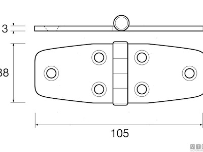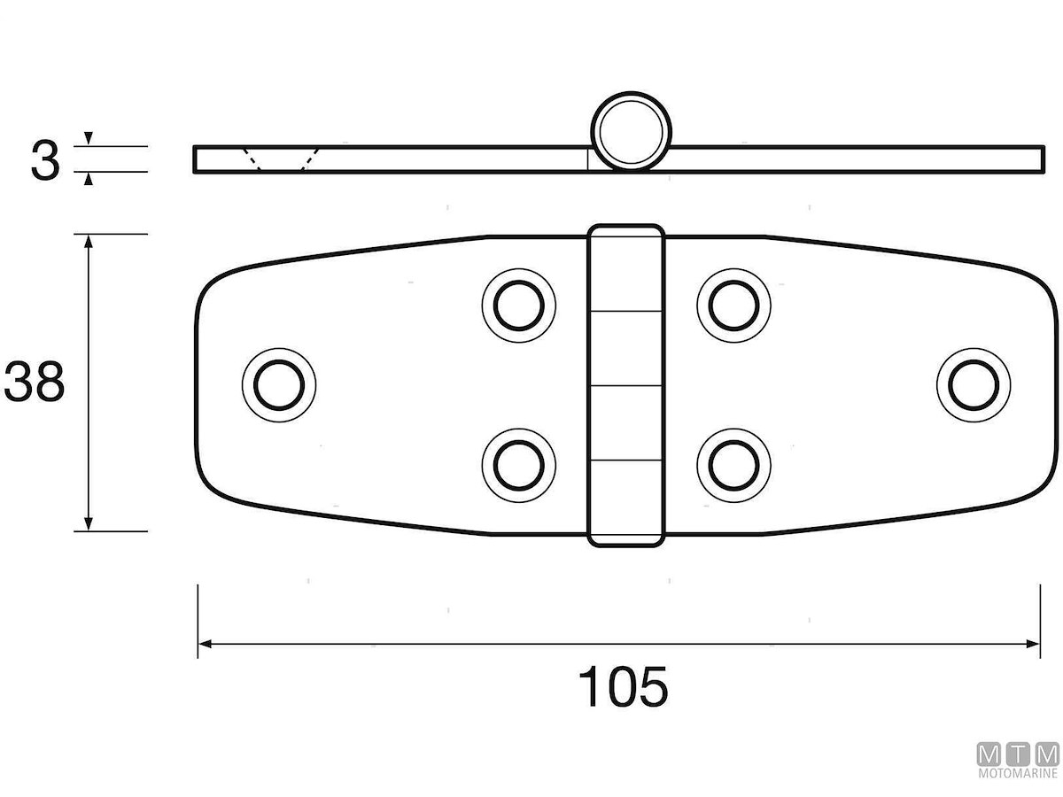 Cerniera molto robusta a biscotto media in Acciaio Inox Extracrome. Spessore 3 mm. Cod.: 0452910 mm: H38 x L105