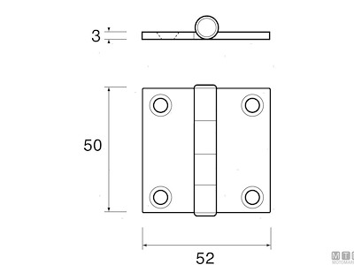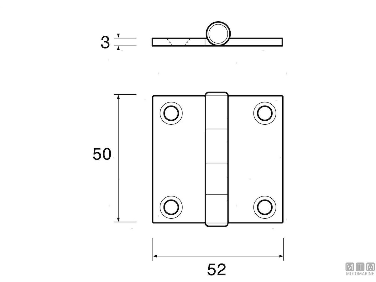 Cerniera molto robusta quadrata media in Acciaio Inox Extracrome. Spessore 3 mm. Cod.: 0452902 mm: H50 x L52
