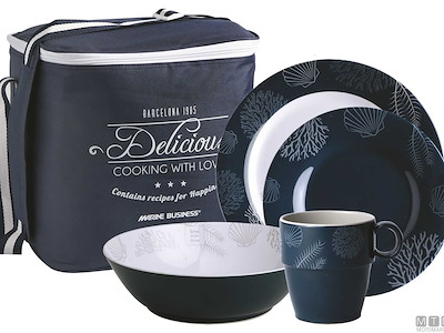 Pratico cestino in Poliestere dotato di cerniera per il trasporto di piatti e stoviglie.
