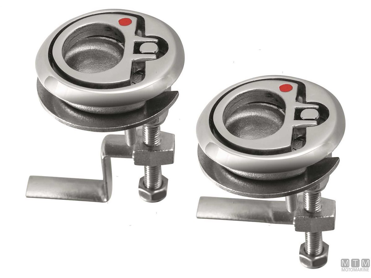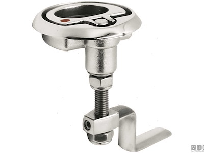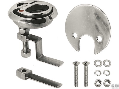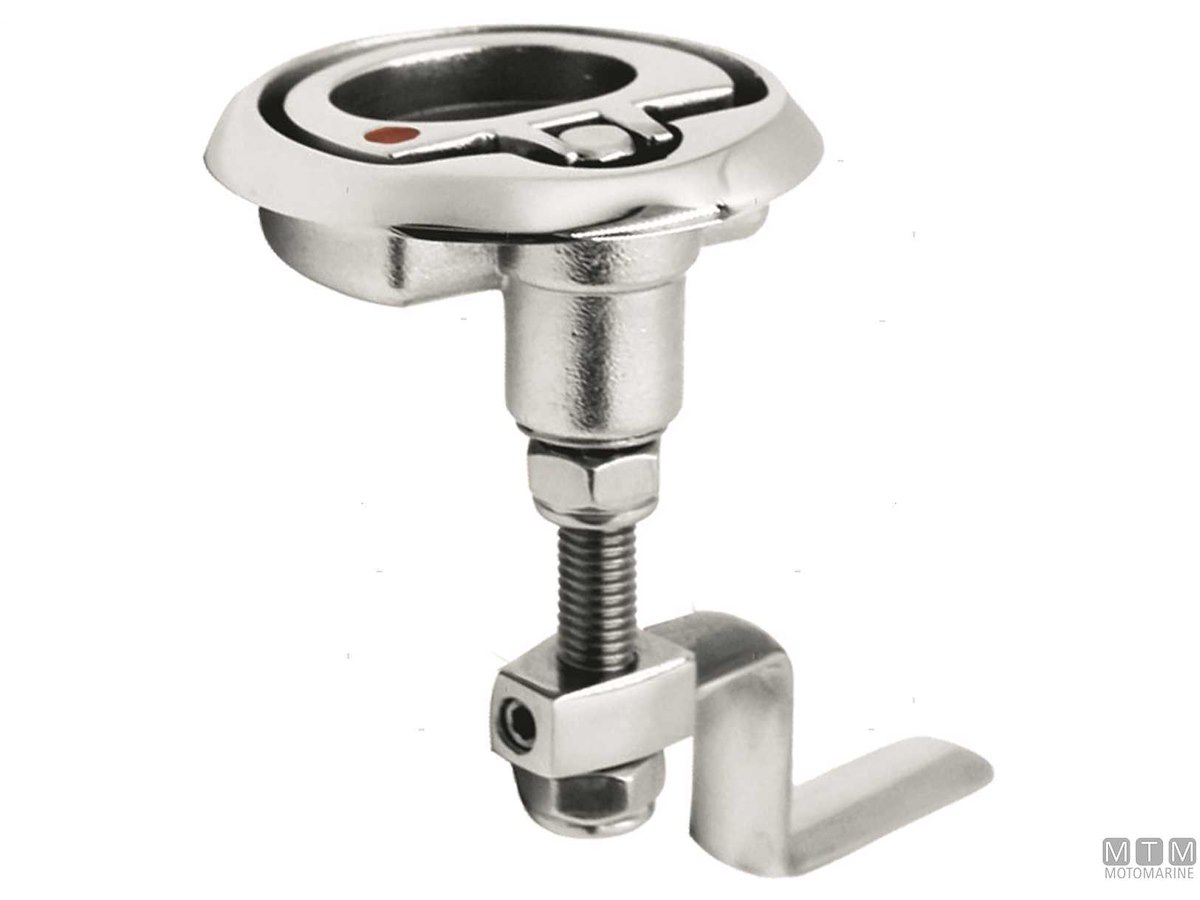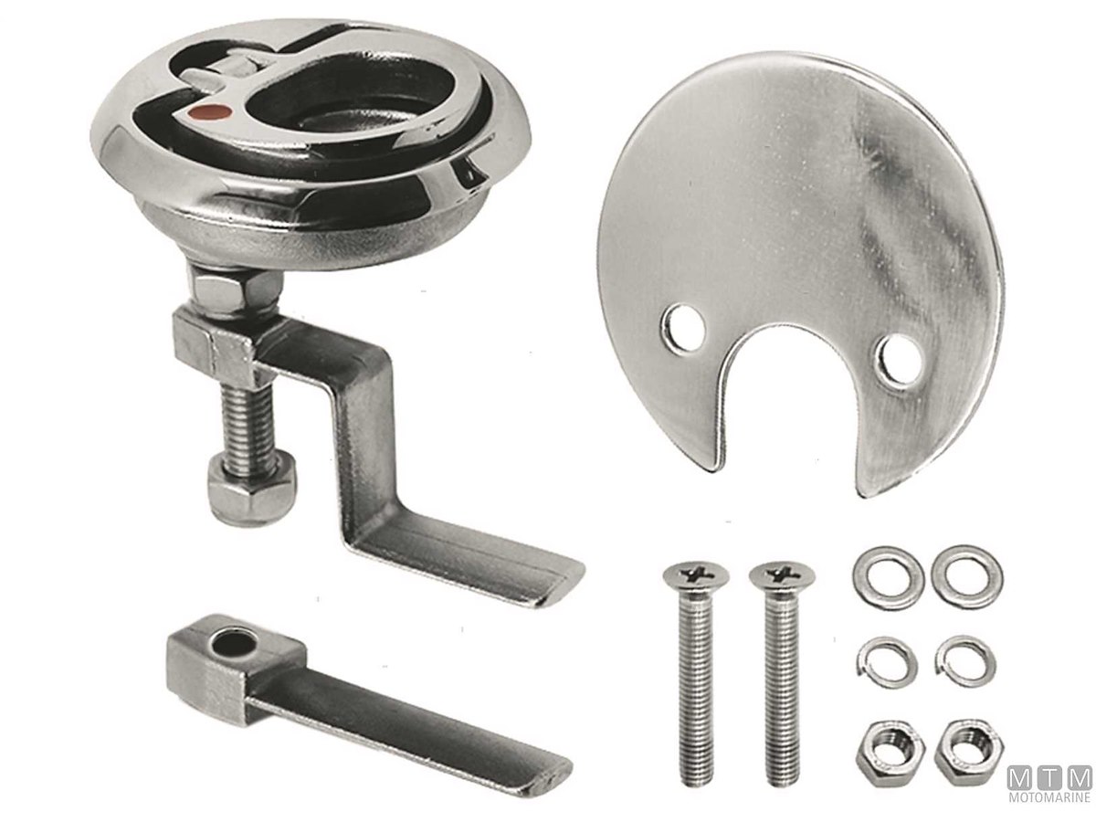 Chiusura a compressione in Acciaio Inox 316 con leva regolabile. Per aprire e chiudere paglioli e boccaporti. Completa di leva dritta e angolata che può essere montata in posizione normale oppure girata (Rev) per coprire tutti gli spessori (A) richiesti.
