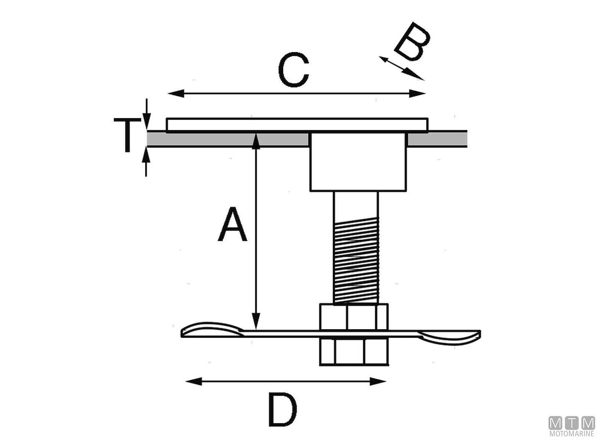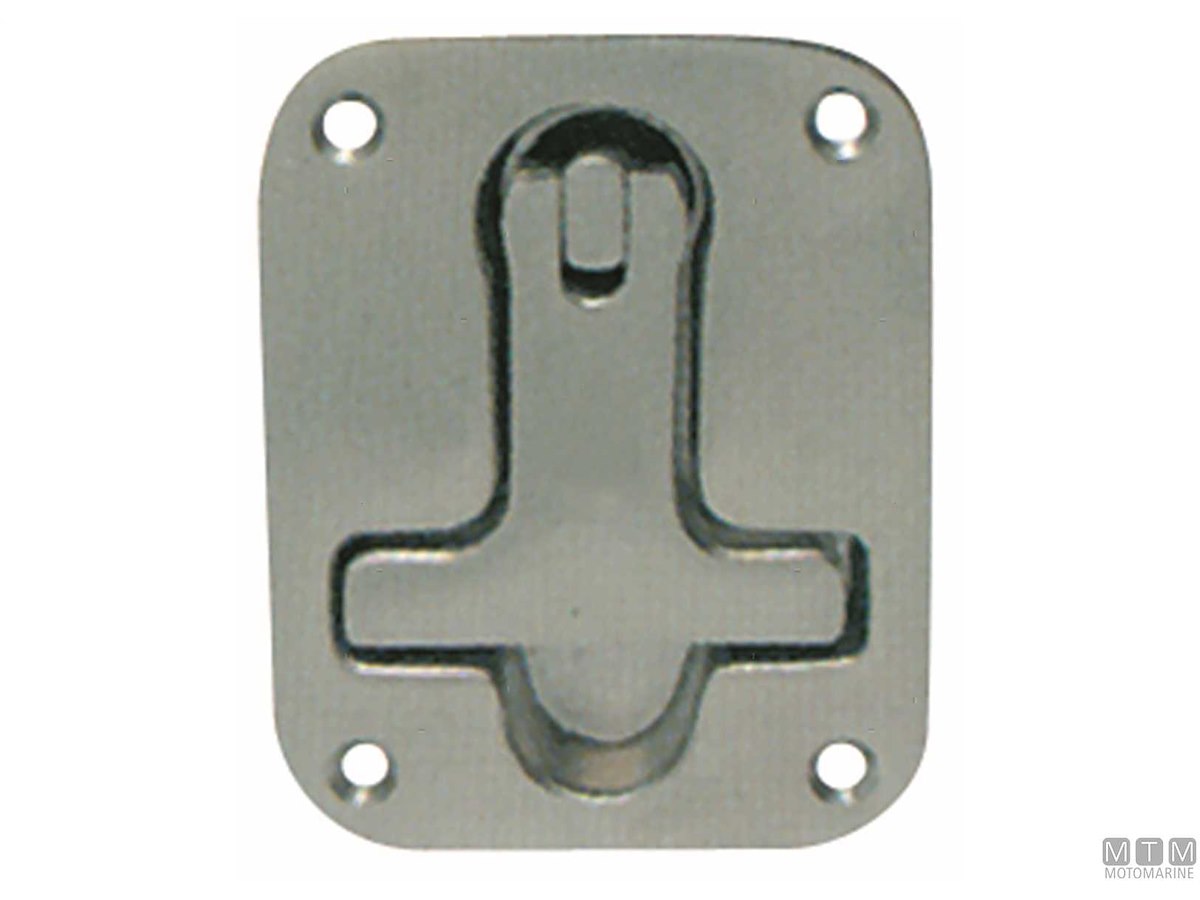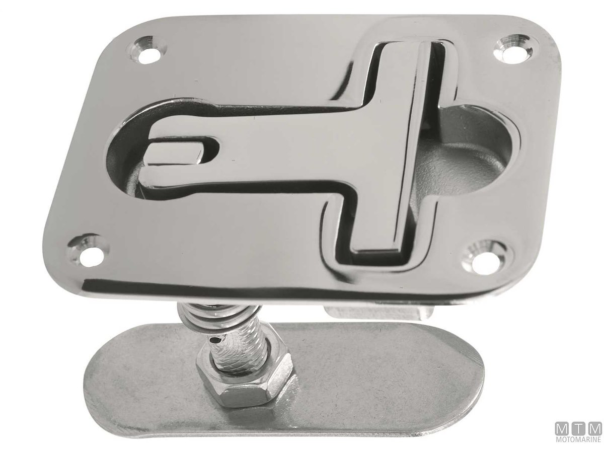 Chiusura a compressione rettangolare in Acciaio Inox con leva regolabile. Piastra a vista con fori vite, montaggio con viti dall'esterno. Per aprire e chiudere paglioli e boccaporti.