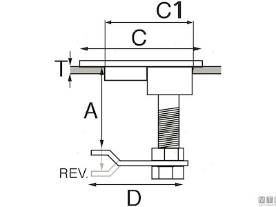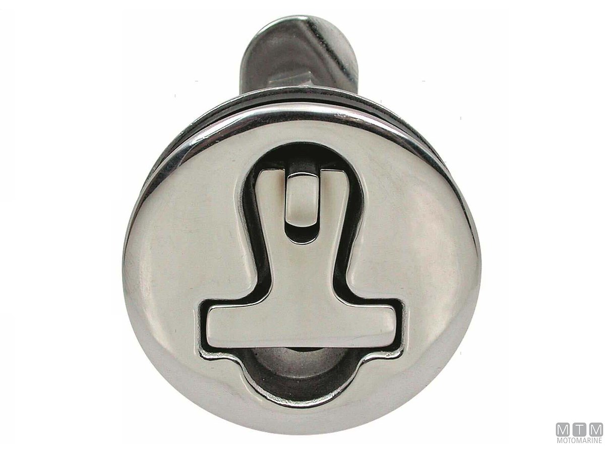 Chiusura a compressione tonda in Acciaio Inox con leva regolabile. Piastra a vista senza fori vite, montaggio con viti dall'interno. Per aprire e chiudere paglioli e boccaporti.