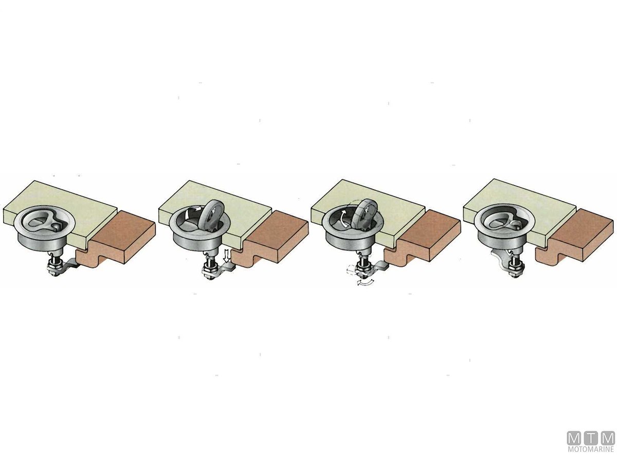 Chiusura a compressione Southco stagna IP65 in Acciaio Inox di qualità superiore con leva regolabile. Per aprire e chiudere paglioli e boccaporti. La leva può essere montata in posizione normale oppure girata (Rev) per coprire tutti gli spessori (A) richiesti.