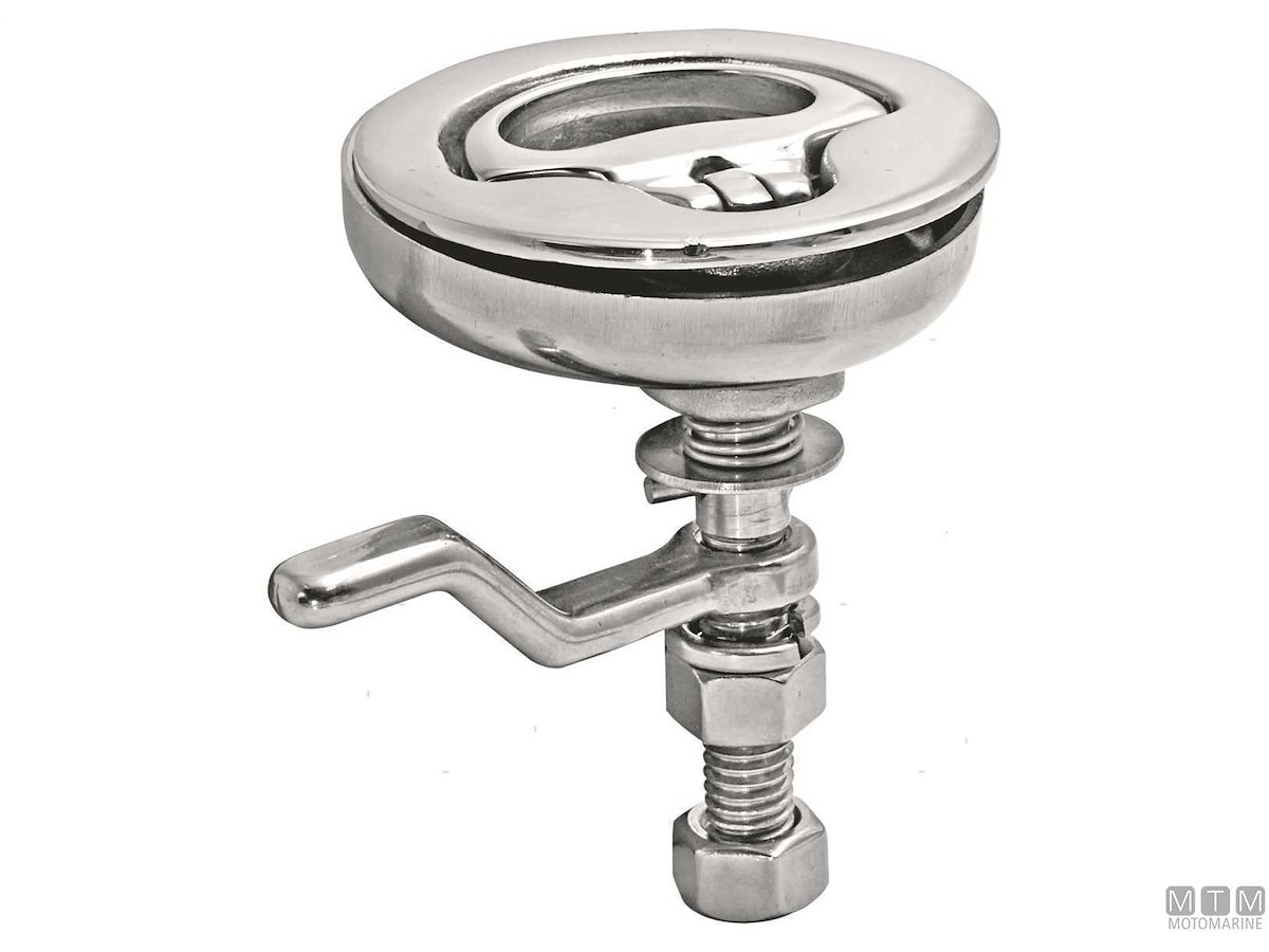 Chiusura a compressione in Acciaio Inox 316 con leva regolabile. Per aprire e chiudere paglioli e boccaporti. La leva può essere montata in posizione normale oppure girata (Rev) per coprire tutti gli spessori (A) richiesti.