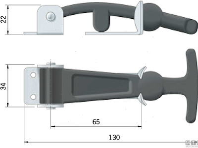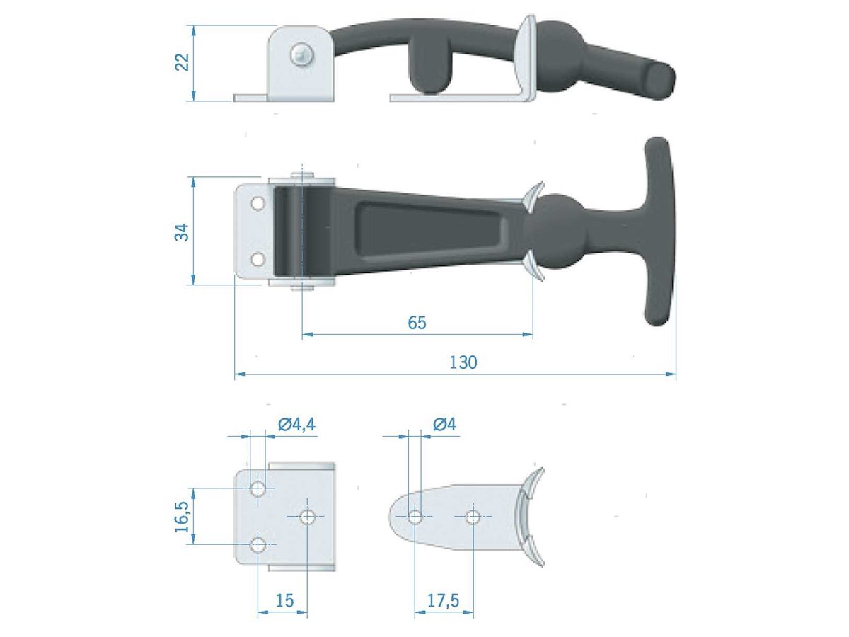 Chiusura a leva Roca in elastomero termoplastico con componenti antigelo e base di attacco in Acciaio Inox. Ideale per portelli, cassoni e ghiacciaie.