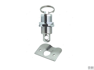 Chiusura a spinta in Acciaio Inox per gavoni. Pulsante a molla con anello e foro portalucchetto.