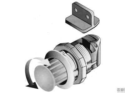 Chiusura a spinta Southco con pomello girevole: il pomello rimane a filo quando chiuso, ma fuoriesce con un semplice tocco in modo da fornire una presa sicura per chiudere e aprire la porta. Ruotare il pomello per aprire, spingere la porta per chiudere. Nottolino a regolazione automatica. Corpo e dado in PC/ABS anti-corrosione. Per porte a filo o sporgenti.