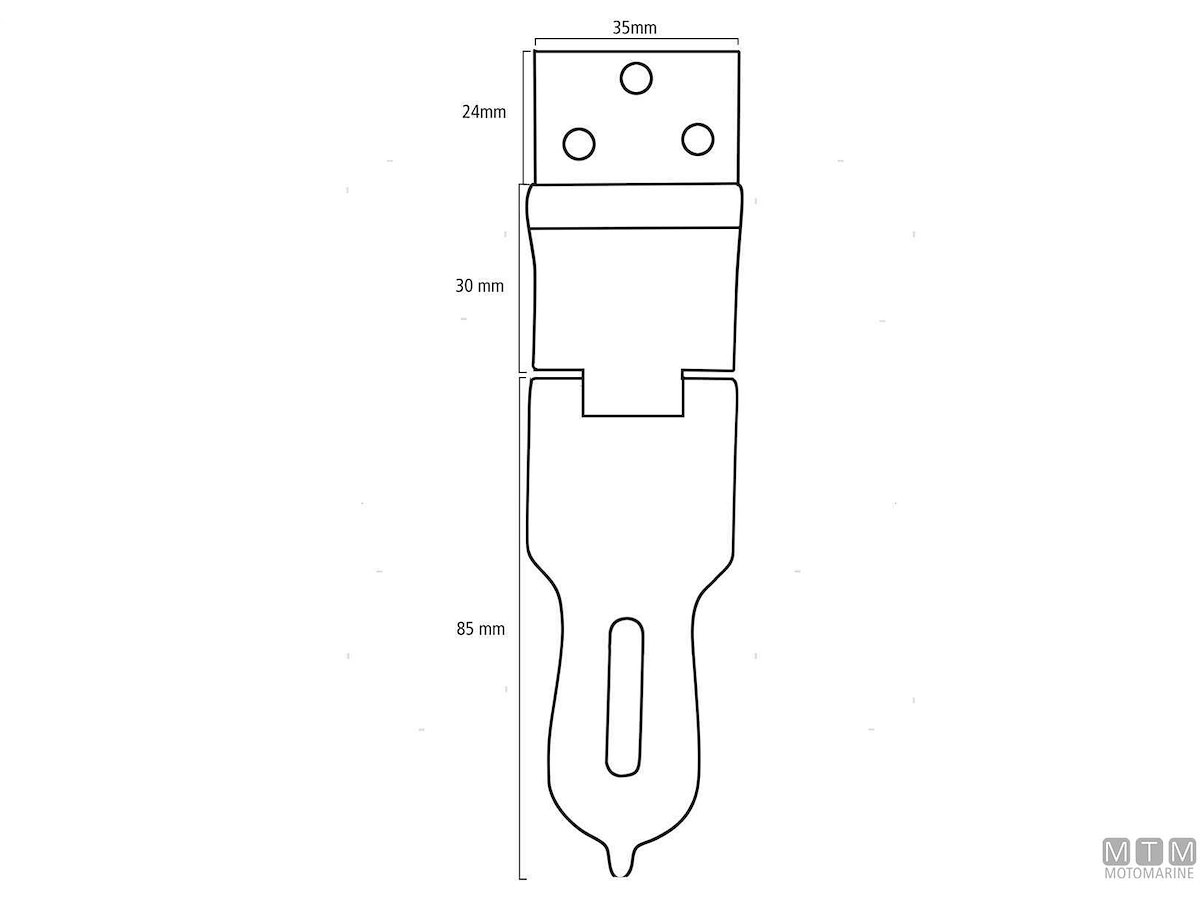 Chiusura porta lucchetto doppia ribalta in Ottone Cromato. Cod.: 0342035 mm: 130 x 35