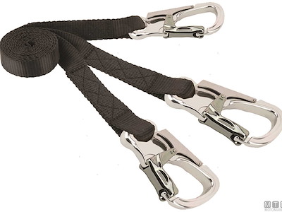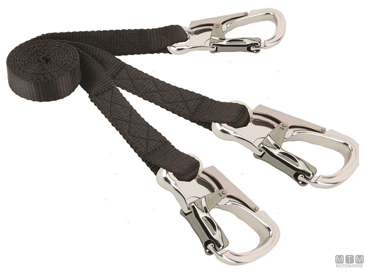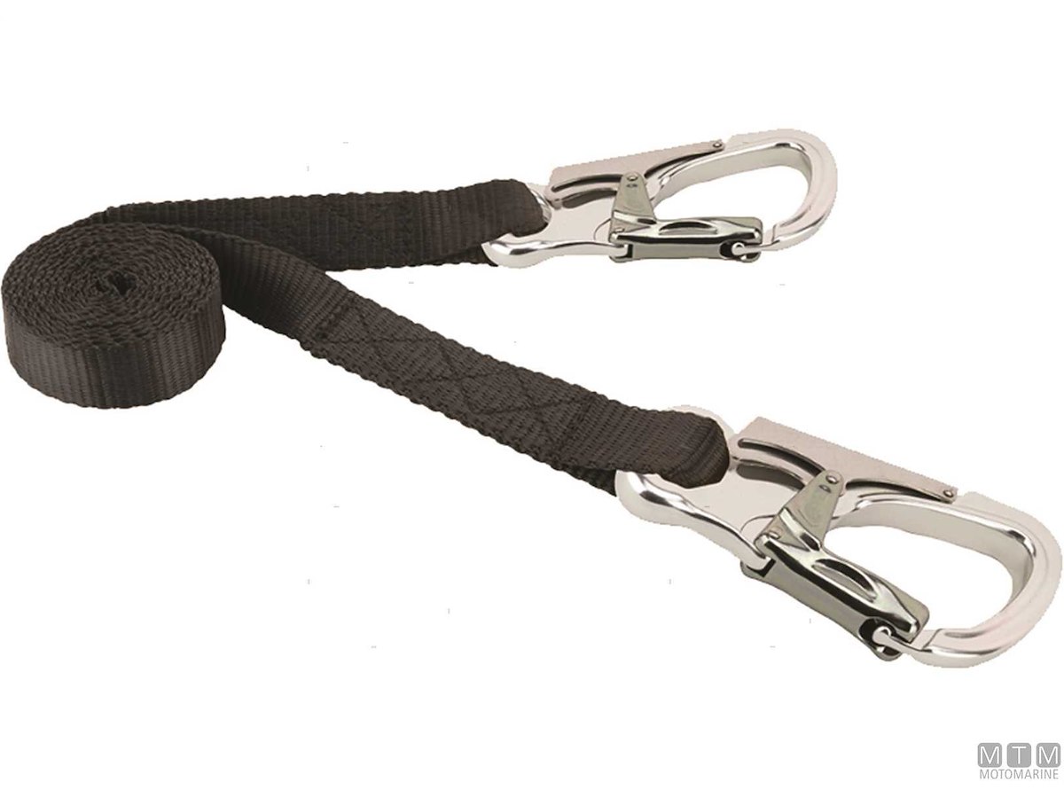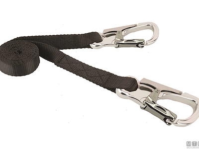 Cinghie ombelicali per imbraghi di sicurezza in Poliestere H.T. Molto leggere e maneggevoli grazie ai moschettoni autobloccanti in lega di Alluminio. Certificate CE-ISO12401.