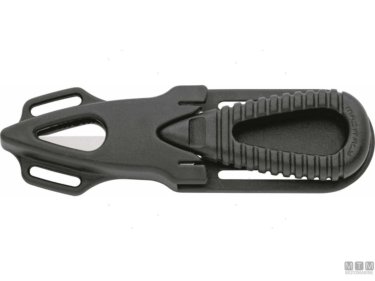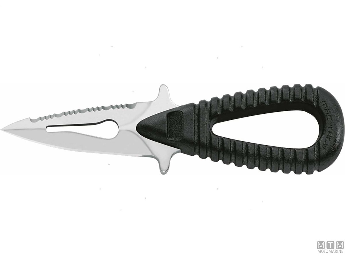 Coltello Sub compatto con tagliacima completo di fodero e cinghie. Lama in Acciaio Inossidabile Nitrogeno W1.4060. Dopo l'uso lavare la lama con acqua dolce e ingrassarla.