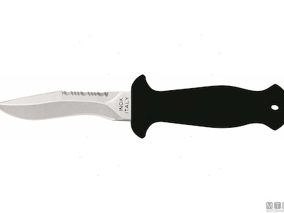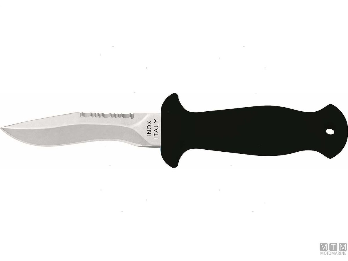 Coltello Sub compatto classico. Completo di fodero e cinghie. Lama in Acciaio Inossidabile W1.4116. Dopo l'uso sciaquare la lama con acqua dolce e ingrassarla.