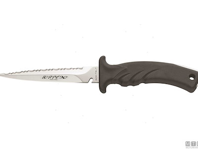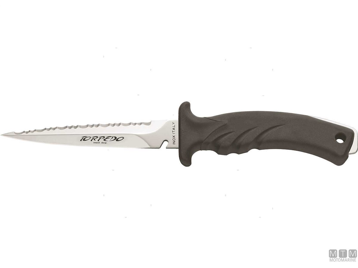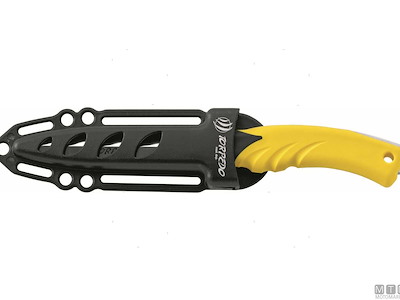 Coltello Sub con manico ergonomico completo di fodero e cinghie. Lama a stiletto in Acciaio Inossidabile Nitrogeno W1.4060. Dopo l'uso lavare la lama con acqua dolce e ingrassarla.