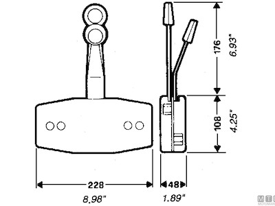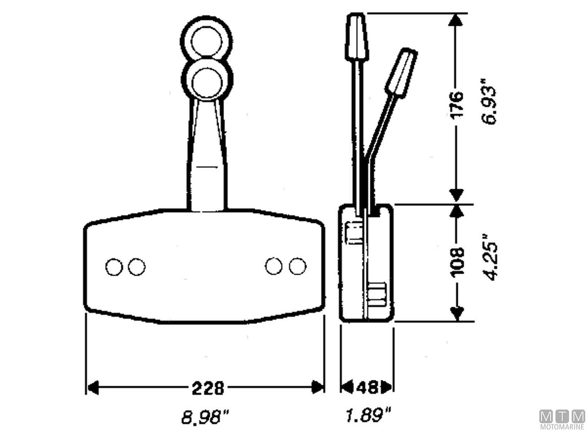 Comando bileva a montaggio esterno a paratia per il controllo di gas e marce di motori fuoribordo. Con il kit K25 utilizzano cavi C2 / C7/ C8 / MACHZero. Con il kit K23 utilizzano cavi C14. Senza alcun kit utilizzano cavi C5.