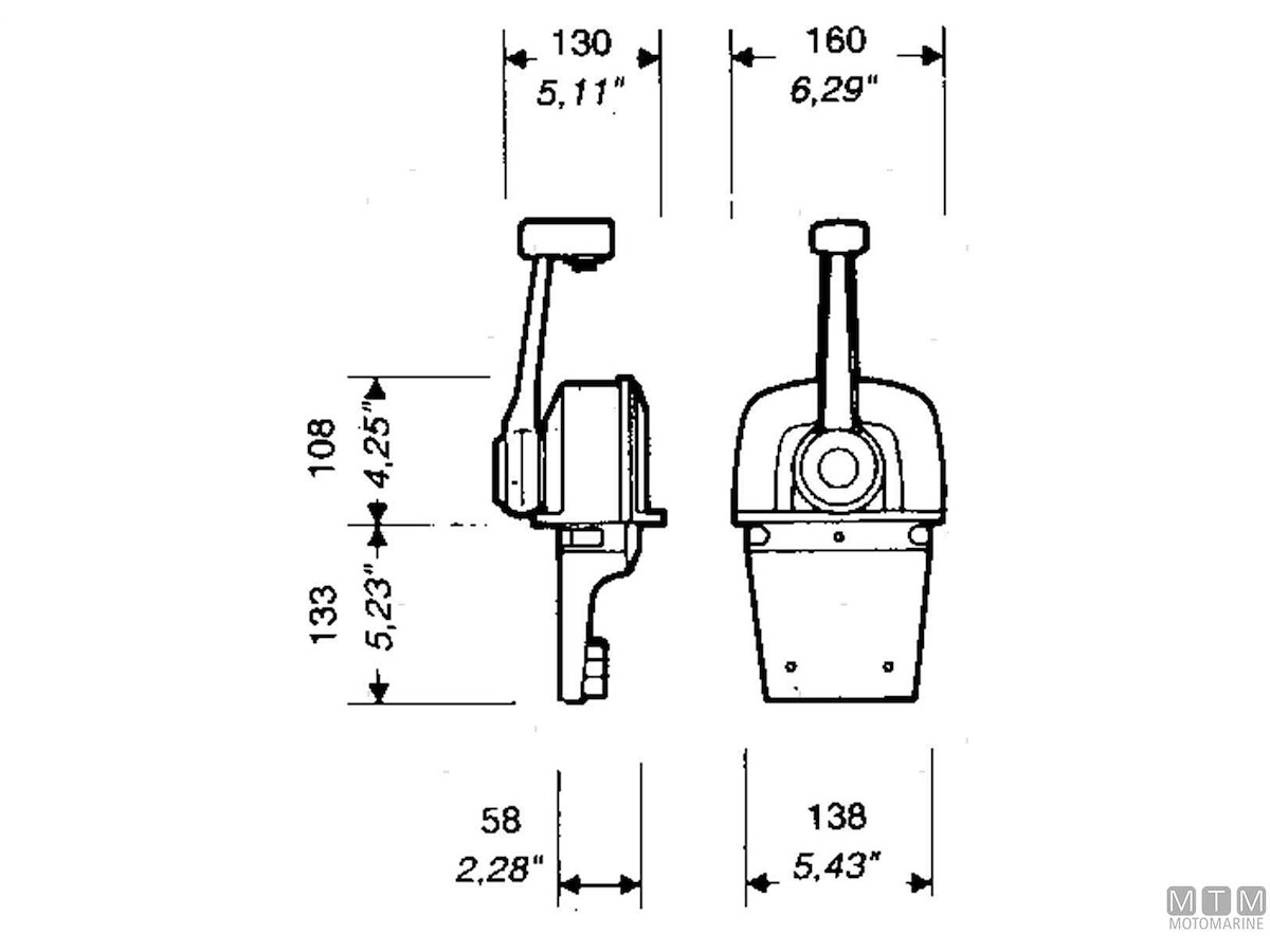 Comando monoleva a doppia azione a montaggio su plancia per il controllo di gas e marce su motori fuoribordo, entrobordo ed entro/fuoribordo. Utilizzano cavi C2 / C8 / C33 / MACHZero. Per i cavi C5 serve il kit K35 (4620035). Mediante l'interruttore di sicurezza opzionale X12 (4620112) l'avviamento del motore si ottiene solamente con la marcia in posizione di folle.